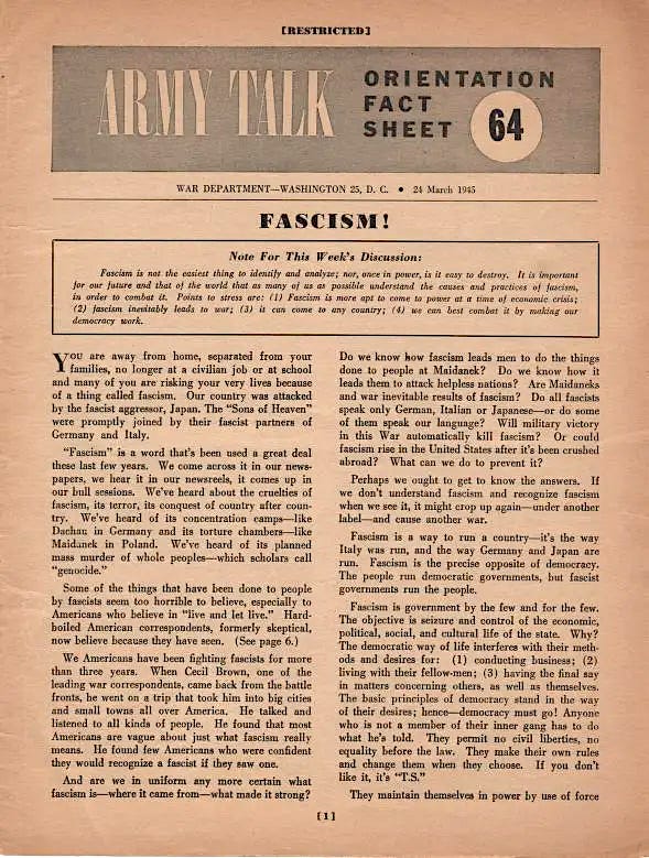 Army Talk Fact Sheet 64: FASCISM!, Open Culture, Mar. 24, 1945